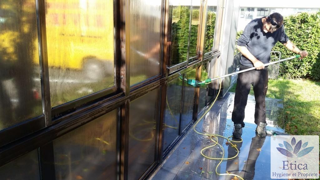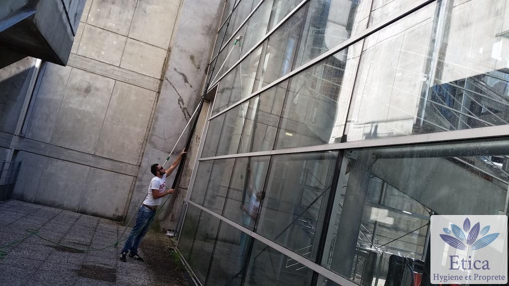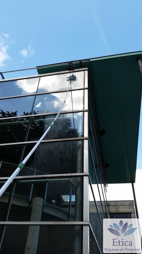 Après réalisation d'un cahier des charges détaillé par Etica, nos équipes interviennent régulièrement ou ponctuellement pour le nettoyage de vitreries avec eau pure (traitement de l'eau enlevant tous les résidus pour un séchage sans trace) :